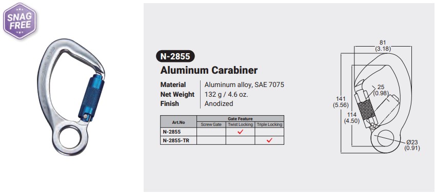 N-2855 / ALUMINUM CARABINER Canadian Office 580 Industrial DriveFort Erie, ONCanadaL2A 5M4 U.S.A. Address 2221 Kenmore AveSuite 106Buffalo, NY14207-1306 Head Office Address YOKE Industrial Corp.#39,33rd RoadTaichung Industrial ParkTaichung 407, Taiwan, R.O.C. Contact Us TEL 905-871-7111 custservice@yoke-niagara.com
