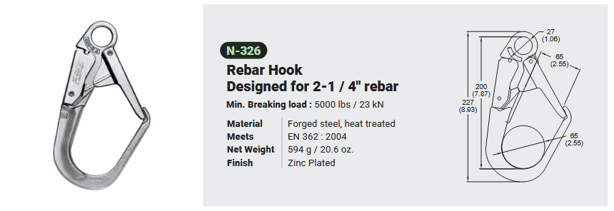 N-326 / REBAR HOOK DESIGNED FOR 2-1/4″ REBAR Canadian Office 580 Industrial DriveFort Erie, ONCanadaL2A 5M4 U.S.A. Address 2221 Kenmore AveSuite 106Buffalo, NY14207-1306 Head Office Address YOKE Industrial Corp.#39,33rd RoadTaichung Industrial ParkTaichung 407, Taiwan, R.O.C. Contact Us TEL 905-871-7111 custservice@yoke-niagara.com