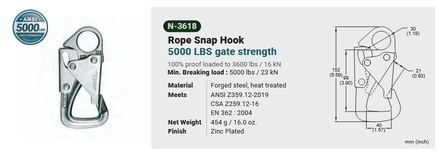 N-3618 / TIE BACK SNAP HOOK (5000 LBS GATE STRENGTH) Canadian Office 580 Industrial DriveFort Erie, ONCanadaL2A 5M4 U.S.A. Address 2221 Kenmore AveSuite 106Buffalo, NY14207-1306 Head Office Address YOKE Industrial Corp.#39,33rd RoadTaichung Industrial ParkTaichung 407, Taiwan, R.O.C. Contact Us TEL 905-871-7111 custservice@yoke-niagara.com
