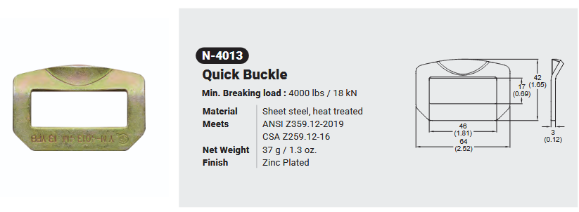 N-4013 / QUICK BUCKLE Canadian Office 580 Industrial DriveFort Erie, ONCanadaL2A 5M4 U.S.A. Address 2221 Kenmore AveSuite 106Buffalo, NY14207-1306 Head Office Address YOKE Industrial Corp.#39,33rd RoadTaichung Industrial ParkTaichung 407, Taiwan, R.O.C. Contact Us TEL 905-871-7111 custservice@yoke-niagara.com
