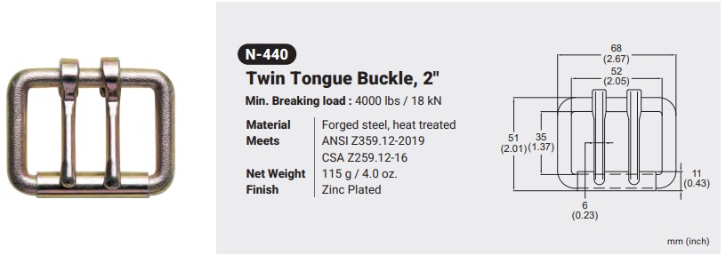 N-440 / TWIN TONGUE BUCKLE, 2″ Canadian Office 580 Industrial DriveFort Erie, ONCanadaL2A 5M4 U.S.A. Address 2221 Kenmore AveSuite 106Buffalo, NY14207-1306 Head Office Address YOKE Industrial Corp.#39,33rd RoadTaichung Industrial ParkTaichung 407, Taiwan, R.O.C. Contact Us TEL 905-871-7111 custservice@yoke-niagara.com