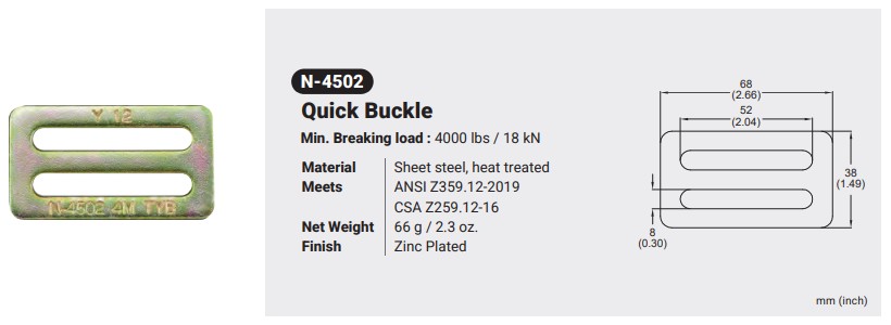 N-4502 / QUICK BUCKLE Canadian Office 580 Industrial DriveFort Erie, ONCanadaL2A 5M4 U.S.A. Address 2221 Kenmore AveSuite 106Buffalo, NY14207-1306 Head Office Address YOKE Industrial Corp.#39,33rd RoadTaichung Industrial ParkTaichung 407, Taiwan, R.O.C. Contact Us TEL 905-871-7111 custservice@yoke-niagara.com