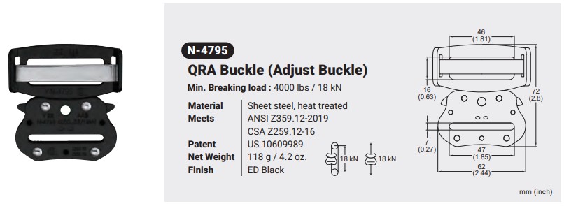 N-4795 QRA Buckle (Adjust Buckle) Canadian Office 580 Industrial DriveFort Erie, ONCanadaL2A 5M4 U.S.A. Address 2221 Kenmore AveSuite 106Buffalo, NY14207-1306 Head Office Address YOKE Industrial Corp.#39,33rd RoadTaichung Industrial ParkTaichung 407, Taiwan, R.O.C. Contact Us TEL 905-871-7111 custservice@yoke-niagara.com