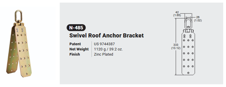 N-485 sWIVEL ROOF ANCHOR BRACKET Canadian Office 580 Industrial DriveFort Erie, ONCanadaL2A 5M4 U.S.A. Address 2221 Kenmore AveSuite 106Buffalo, NY14207-1306 Head Office Address YOKE Industrial Corp.#39,33rd RoadTaichung Industrial ParkTaichung 407, Taiwan, R.O.C. Contact Us TEL 905-871-7111 custservice@yoke-niagara.com