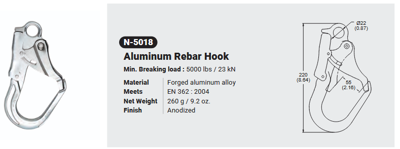 N-5018 / ALUMINUM REBAR HOOK Canadian Office 580 Industrial DriveFort Erie, ONCanadaL2A 5M4 U.S.A. Address 2221 Kenmore AveSuite 106Buffalo, NY14207-1306 Head Office Address YOKE Industrial Corp.#39,33rd RoadTaichung Industrial ParkTaichung 407, Taiwan, R.O.C. Contact Us TEL 905-871-7111 custservice@yoke-niagara.com