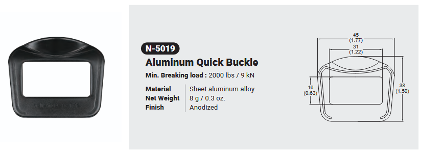N-5019 ALUMINUM QUICK BUCKLE Canadian Office 580 Industrial DriveFort Erie, ONCanadaL2A 5M4 U.S.A. Address 2221 Kenmore AveSuite 106Buffalo, NY14207-1306 Head Office Address YOKE Industrial Corp.#39,33rd RoadTaichung Industrial ParkTaichung 407, Taiwan, R.O.C. Contact Us TEL 905-871-7111 custservice@yoke-niagara.com