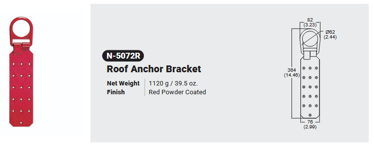 N-5072R ROOF ANCHOR BRACKET Canadian Office 580 Industrial DriveFort Erie, ONCanadaL2A 5M4 U.S.A. Address 2221 Kenmore AveSuite 106Buffalo, NY14207-1306 Head Office Address YOKE Industrial Corp.#39,33rd RoadTaichung Industrial ParkTaichung 407, Taiwan, R.O.C. Contact Us TEL 905-871-7111 custservice@yoke-niagara.com