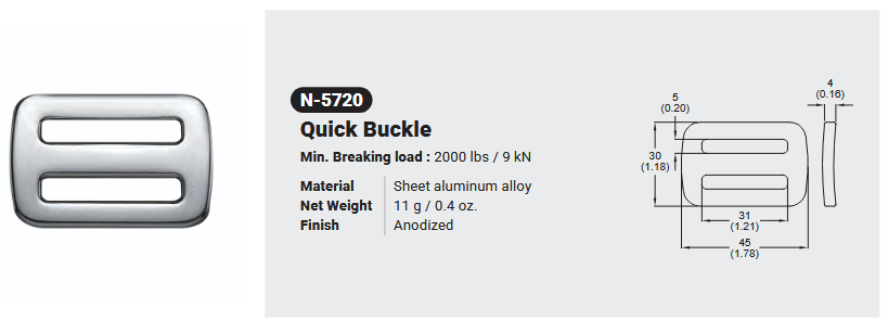 N-5720 ALUMINUM QUICK BUCKLE Canadian Office 580 Industrial DriveFort Erie, ONCanadaL2A 5M4 U.S.A. Address 2221 Kenmore AveSuite 106Buffalo, NY14207-1306 Head Office Address YOKE Industrial Corp.#39,33rd RoadTaichung Industrial ParkTaichung 407, Taiwan, R.O.C. Contact Us TEL 905-871-7111 custservice@yoke-niagara.com