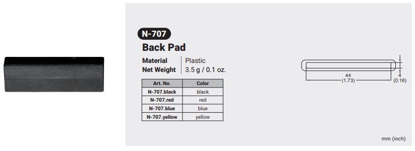 N-707 Plastic Back pad Canadian Office 580 Industrial DriveFort Erie, ONCanadaL2A 5M4 U.S.A. Address 2221 Kenmore AveSuite 106Buffalo, NY14207-1306 Head Office Address YOKE Industrial Corp.#39,33rd RoadTaichung Industrial ParkTaichung 407, Taiwan, R.O.C. Contact Us TEL 905-871-7111 custservice@yoke-niagara.com