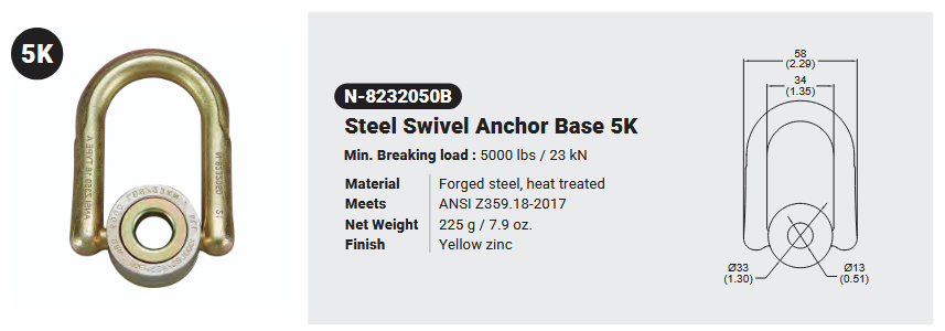 N-823250B STEEL SWIVEL ANCHOR BASE 5K Canadian Office 580 Industrial DriveFort Erie, ONCanadaL2A 5M4 U.S.A. Address 2221 Kenmore AveSuite 106Buffalo, NY14207-1306 Head Office Address YOKE Industrial Corp.#39,33rd RoadTaichung Industrial ParkTaichung 407, Taiwan, R.O.C. Contact Us TEL 905-871-7111 custservice@yoke-niagara.com