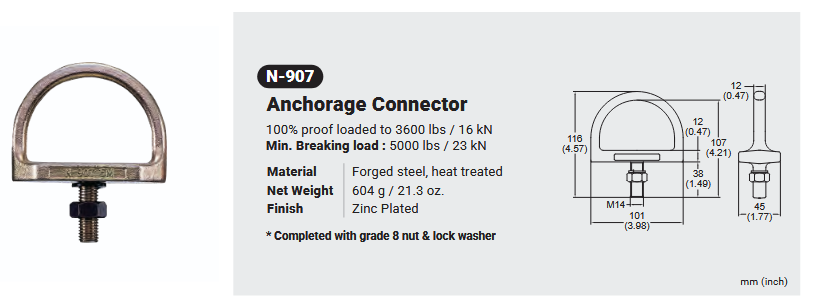 N-907 ANCHORAGE CONNECTOR Canadian Office 580 Industrial DriveFort Erie, ONCanadaL2A 5M4 U.S.A. Address 2221 Kenmore AveSuite 106Buffalo, NY14207-1306 Head Office Address YOKE Industrial Corp.#39,33rd RoadTaichung Industrial ParkTaichung 407, Taiwan, R.O.C. Contact Us TEL 905-871-7111 custservice@yoke-niagara.com