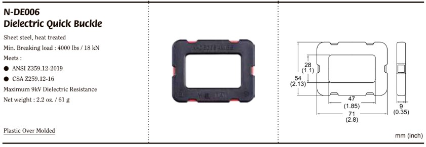 N-DE006 / DIELECTRIC QUICK BUCKLE Canadian Office 580 Industrial DriveFort Erie, ONCanadaL2A 5M4 U.S.A. Address 2221 Kenmore AveSuite 106Buffalo, NY14207-1306 Head Office Address YOKE Industrial Corp.#39,33rd RoadTaichung Industrial ParkTaichung 407, Taiwan, R.O.C. Contact Us TEL 905-871-7111 custservice@yoke-niagara.com