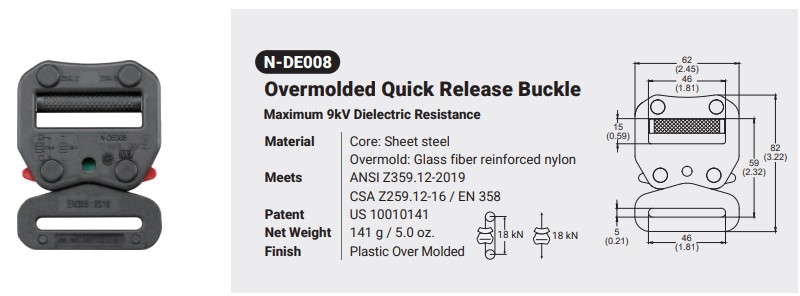 N-DE008 Dielectric quick release buckle Canadian Office 580 Industrial DriveFort Erie, ONCanadaL2A 5M4 U.S.A. Address 2221 Kenmore AveSuite 106Buffalo, NY14207-1306 Head Office Address YOKE Industrial Corp.#39,33rd RoadTaichung Industrial ParkTaichung 407, Taiwan, R.O.C. Contact Us TEL 905-871-7111 custservice@yoke-niagara.com