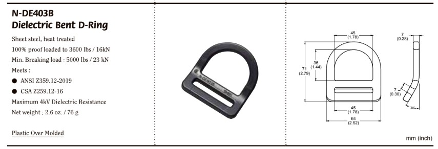 N-DE403B DIELECTRIC BENT D-RING Canadian Office 580 Industrial DriveFort Erie, ONCanadaL2A 5M4 U.S.A. Address 2221 Kenmore AveSuite 106Buffalo, NY14207-1306 Head Office Address YOKE Industrial Corp.#39,33rd RoadTaichung Industrial ParkTaichung 407, Taiwan, R.O.C. Contact Us TEL 905-871-7111 custservice@yoke-niagara.com