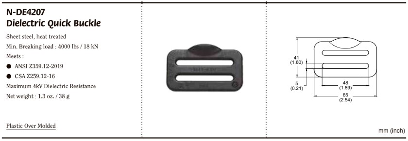 N-DE4207 DIELECTRIC QUICK BUCKLE Canadian Office 580 Industrial DriveFort Erie, ONCanadaL2A 5M4 U.S.A. Address 2221 Kenmore AveSuite 106Buffalo, NY14207-1306 Head Office Address YOKE Industrial Corp.#39,33rd RoadTaichung Industrial ParkTaichung 407, Taiwan, R.O.C. Contact Us TEL 905-871-7111 custservice@yoke-niagara.com