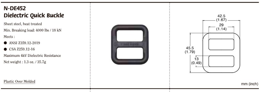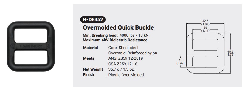 N-DE452 / DIELECTRIC QUICK BUCKLE Canadian Office 580 Industrial DriveFort Erie, ONCanadaL2A 5M4 U.S.A. Address 2221 Kenmore AveSuite 106Buffalo, NY14207-1306 Head Office Address YOKE Industrial Corp.#39,33rd RoadTaichung Industrial ParkTaichung 407, Taiwan, R.O.C. Contact Us TEL 905-871-7111 custservice@yoke-niagara.com