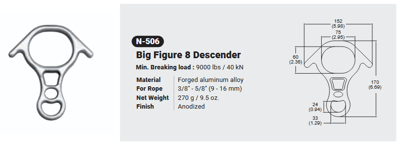 N506 / BIG FIGURE 8 DESCENDER Canadian Office 580 Industrial DriveFort Erie, ONCanadaL2A 5M4 U.S.A. Address 2221 Kenmore AveSuite 106Buffalo, NY14207-1306 Head Office Address YOKE Industrial Corp.#39,33rd RoadTaichung Industrial ParkTaichung 407, Taiwan, R.O.C. Contact Us TEL 905-871-7111 custservice@yoke-niagara.com