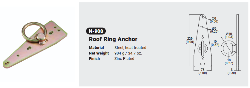 N-908 ROOF RING ANCHOR Canadian Office 580 Industrial DriveFort Erie, ONCanadaL2A 5M4 U.S.A. Address 2221 Kenmore AveSuite 106Buffalo, NY14207-1306 Head Office Address YOKE Industrial Corp.#39,33rd RoadTaichung Industrial ParkTaichung 407, Taiwan, R.O.C. Contact Us TEL 905-871-7111 custservice@yoke-niagara.com
